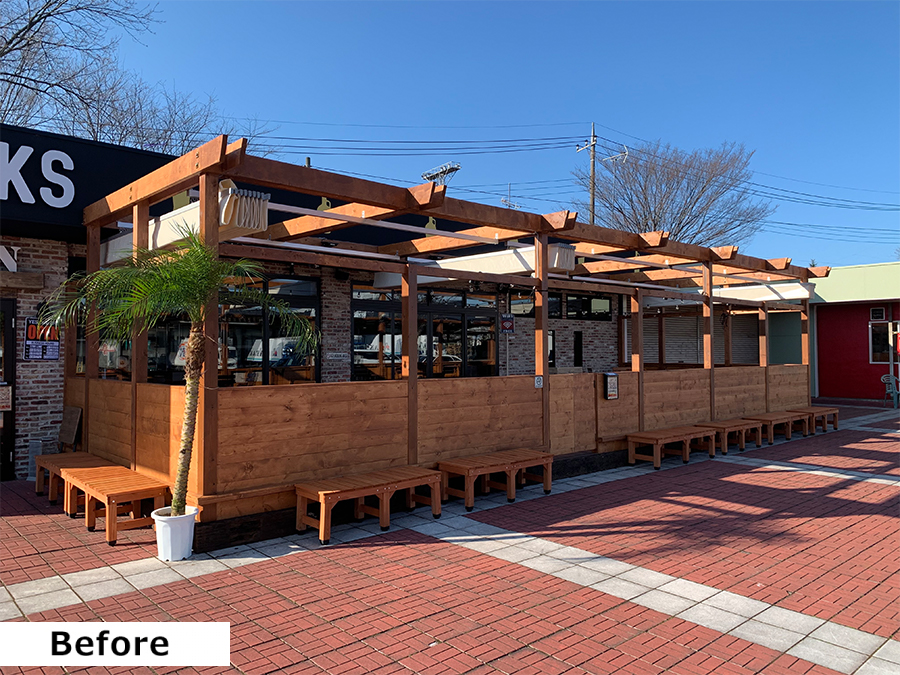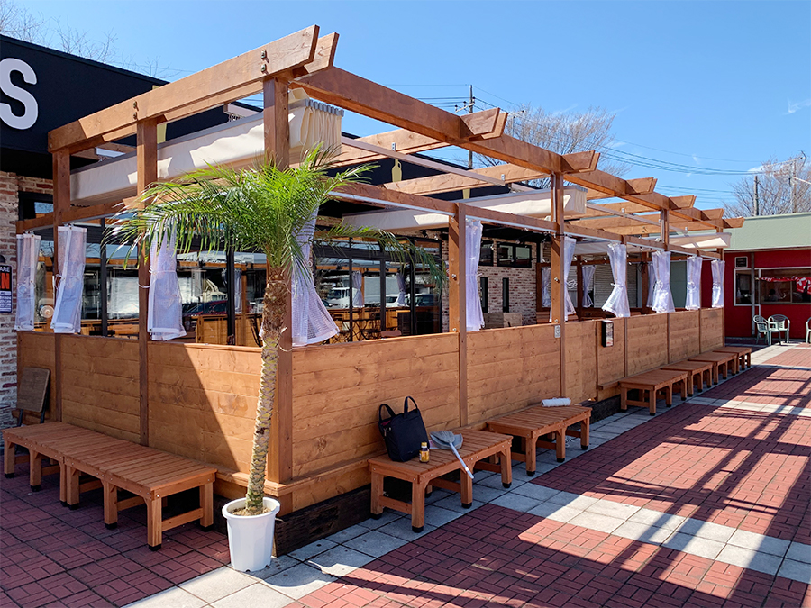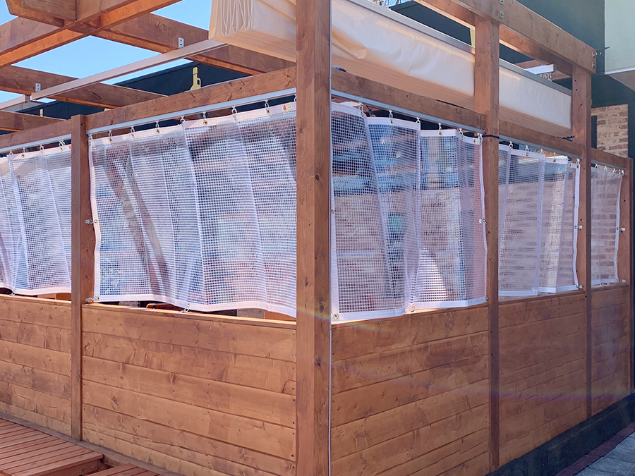 ビアレストランテラス席の寒さ対策として、ビニールカーテンの設置をさせて頂きました。