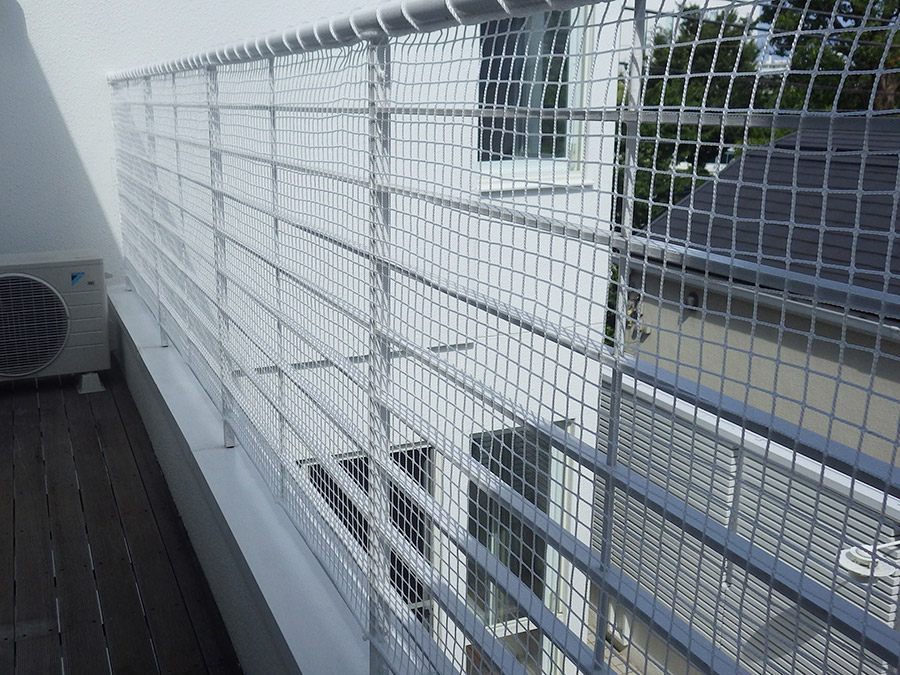 また屋外バルコニーの安全対策ネットもご依頼いただき、外観デザインを損なわないようホワイトで施工いたしました。